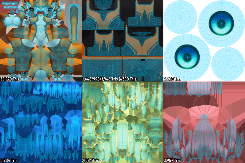 Not counting texture swaps, these looks can be achieved in-game using the avatar expression menu.